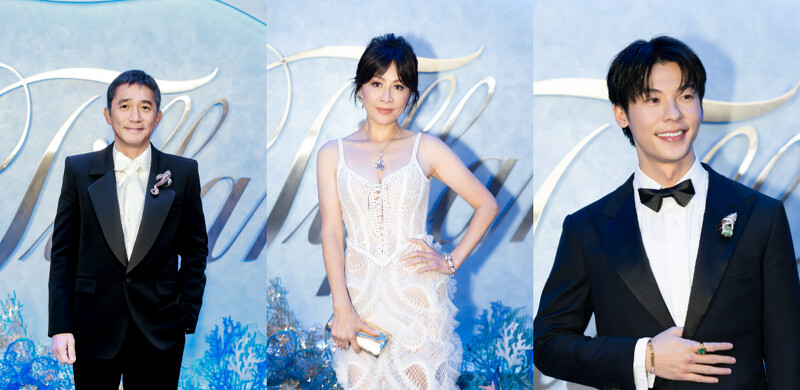 幻海秘境Out of the Blue另一个最具话题性的作品就是款鱼跃光影(Pisces)胸针了,重新演绎史隆伯杰先生 (Jean Schlumberger)的经典设计,将大自然中迷人的几何美学融入珠宝中,展现海洋生物优雅迷人的姿态,系列採用未加工的帕帕拉夏蓝宝石、钻石,粉红色、橙色和Umba蓝宝石,以柔和的暖色调去配衬海洋的蓝,是相当有个性及态度的创作,尤其在工艺上更是挑战极限,鱼身每个机关皆十足灵活、动感,精準形塑鱼儿在大海里优游的姿态。鱼跃光影(Pisces)包括胸针、长项鍊、耳环、戒指等作品,其中以胸针创作最令人惊叹,複杂工艺加乘很具分量感的大Piece设计立刻更吸引梁朝伟抢先配戴,搭配黑色正装礼服,气势非凡。