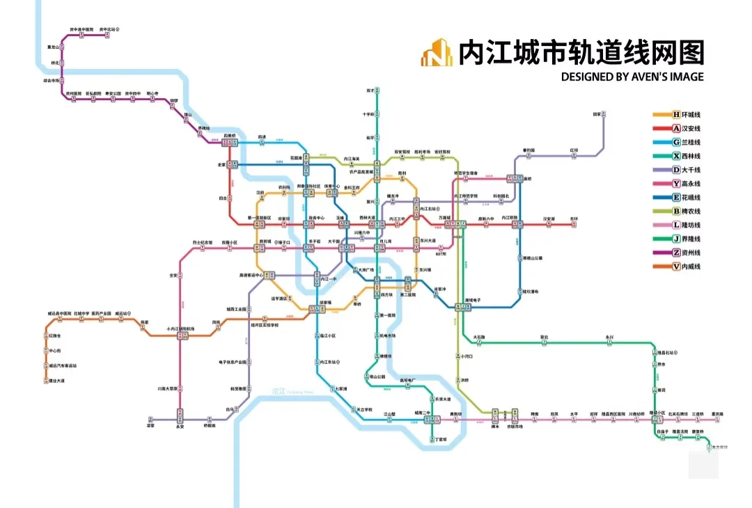 内江规划城市轨道交通系统,想法很赞!2015 年基本确定线网分布格局,规划了 M1、M2、M3、M4 四条线路,总长 89.1 公里。M4 线串起其他三条线形成环线,其余三条呈放射状,构成“一环六射”格局,能让新老城区和各组团快速连接。